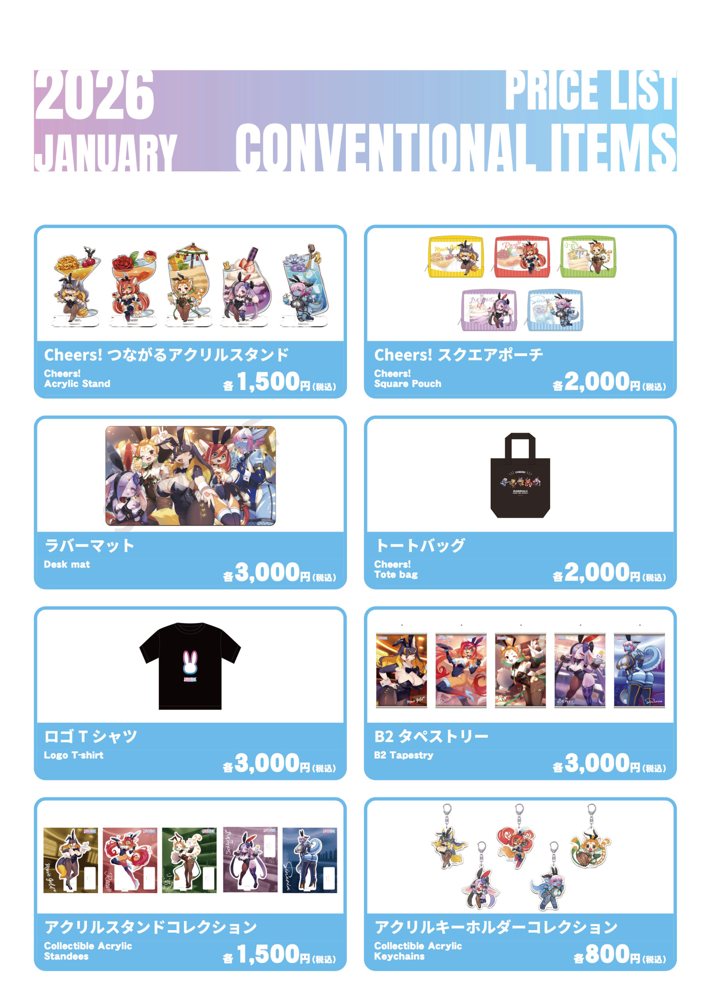 • Cheers! Bunnimals つながるアクリルスタンド(全5種) 各1,650円各1,500円